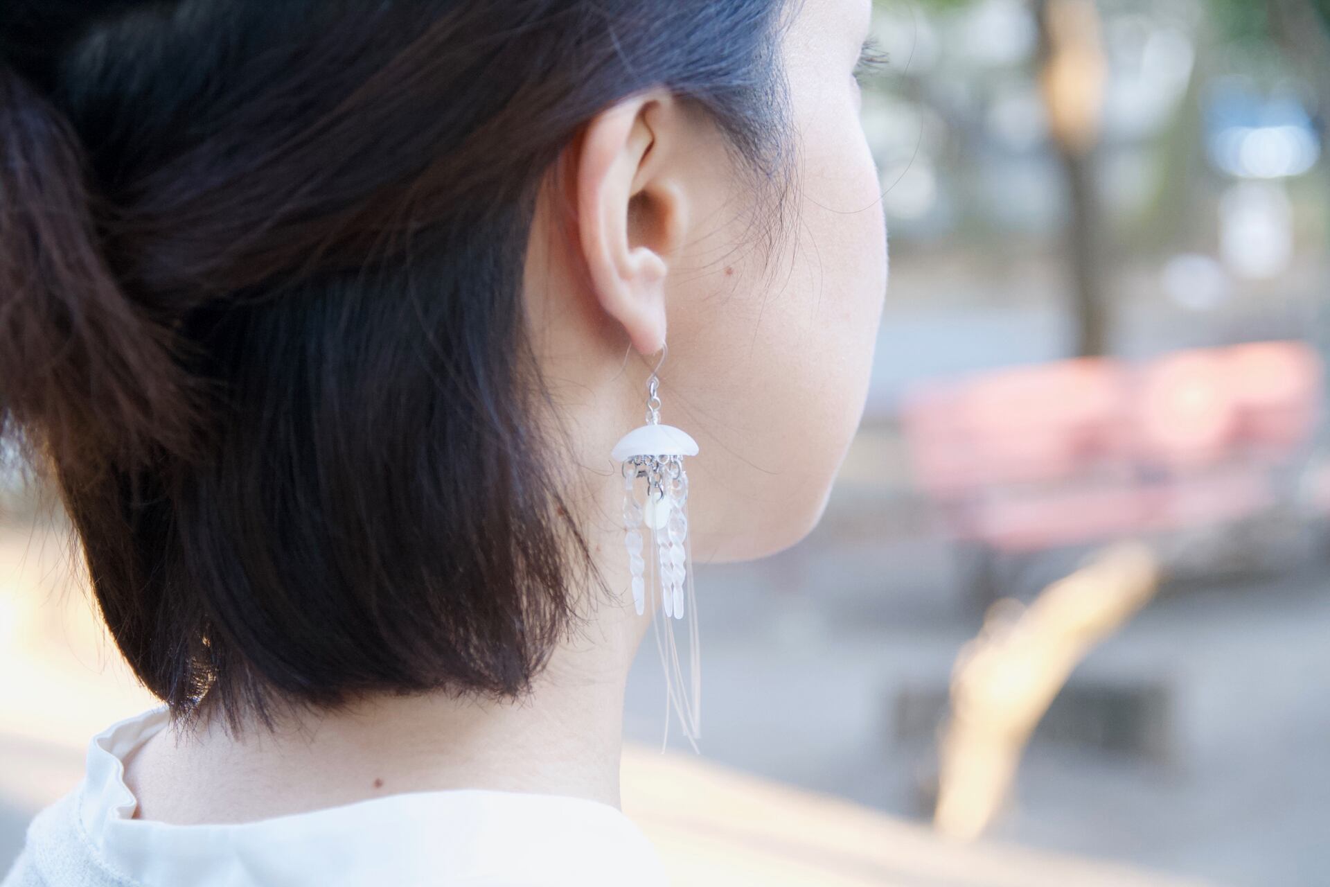 しゃらしゃらと涼やかな音色が、お出かけを楽しくしてくれるかもしれません。 眺めてほっこり、身につけて心踊る、hoccolieのクラゲです。